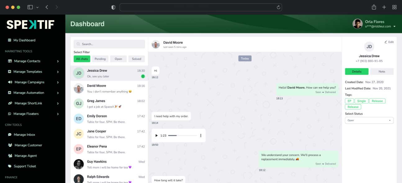 Spektif is a complete cross-platform WhatsApp CRM and marketing tool that helps businesses manage conversations, automate customer engagement, and run marketing campaigns through WhatsApp.